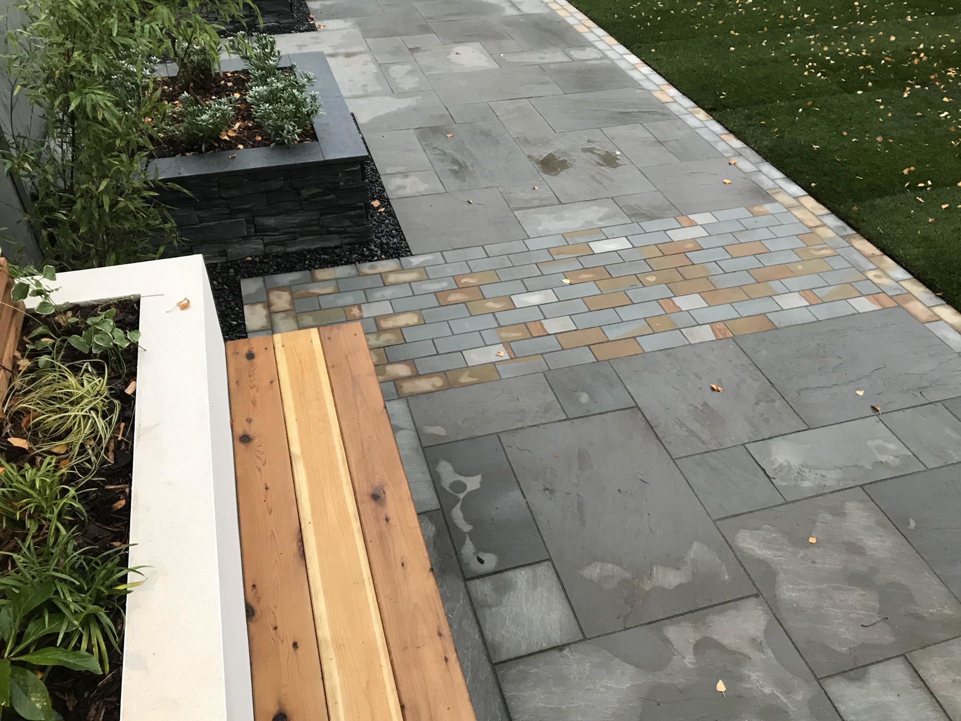 Dark grey Granite paving with light grey Granite edging and pointed with a slurry based grout. Not only is granite an extremely durable surface it has an extremely elegant finish wish can stand the test of time.